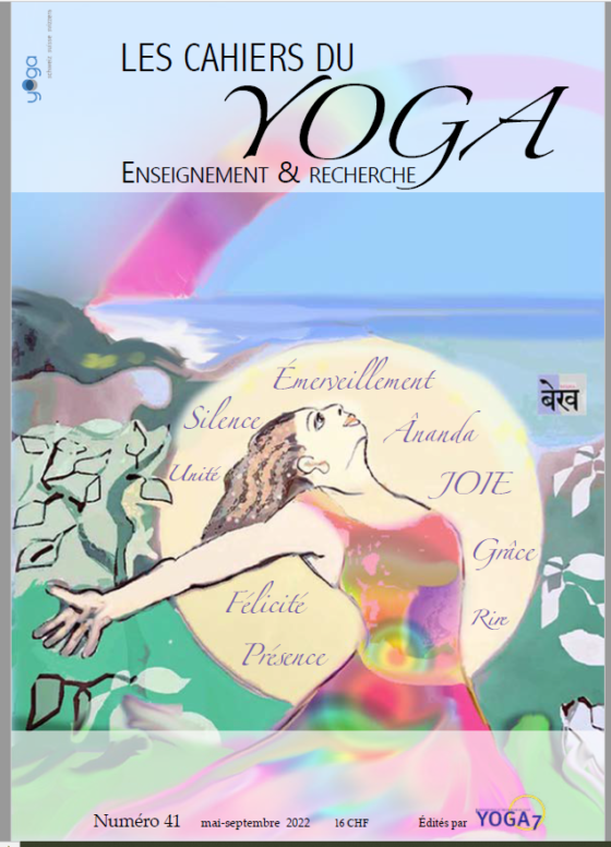Commençons ce chemin vers la Joie avec l’exploration par Gérard Duc des différentes voies pour y accéder malgré les souffrances, les désirs, les peurs, la tristesse. Lucie Pfefferlé poursuit en nous éclairant de la lumière des textes des Yoga-Sûtrâ de Patanjali, de l’allégorie du Charriot et de la Bhagavad Gîtâ. Nous approchons ensuite Ânanda avec Anoula Sifonios qui nous confie son expérience et sa compréhension de la Taittirîya-upanisad. Eveline Waas Bidaux nous partage sa joie d’être avec la pratique du mantra yoga. En suivant encore les traditions de l’Inde, Liliane Cattalano évoque la Joie sacrée sous le prisme des courants de pensée indiens. Michèle Lefèvre poursuit en expliquant les neuf rasa, « essences » des émotions, de la tradition indienne ainsi que hasya, rasa de la joie. Elle nous invite aussi à une belle pratique pour explorer et nourrir la joie intérieure. Le chemin continue avec le témoignage vécu de Nicole Eraers puis avec le conte, poétique, enchanteur, de Malek Daouk. Enfin l’énergie joyeuse de Swami Vijayânanda, disciple de Mâ Anandamayî (qui signifie mère de la Joie) éclaire les dernières pages de ces Cahiers avec la contribution de trois personnes qui ont reçu les enseignements de ce grand sage : Blanche de Richememont, Geneviève Koevoets et Jacques Vigne.